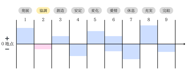 「2」は分割、受容、バランスなどを表します。