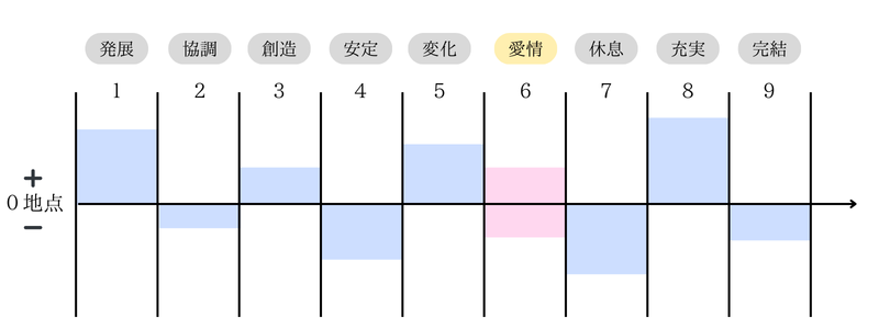- 「6」は「真ん中」に立ち、どちらにも偏らずにバランスを取っている。